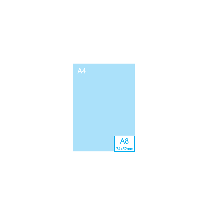 - Afwerking: gesneden naar A8 (52 x 74 mm)