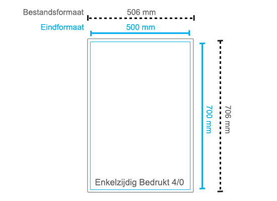 Let op dat u bij het opmaken van uw drukwerk rekening houdt met de gebieden die wegvallen bij het snijden en de eventuele nabewerking van dit product. Klik hier voor meer informatie over het aanleveren van uw drukwerkbestanden.